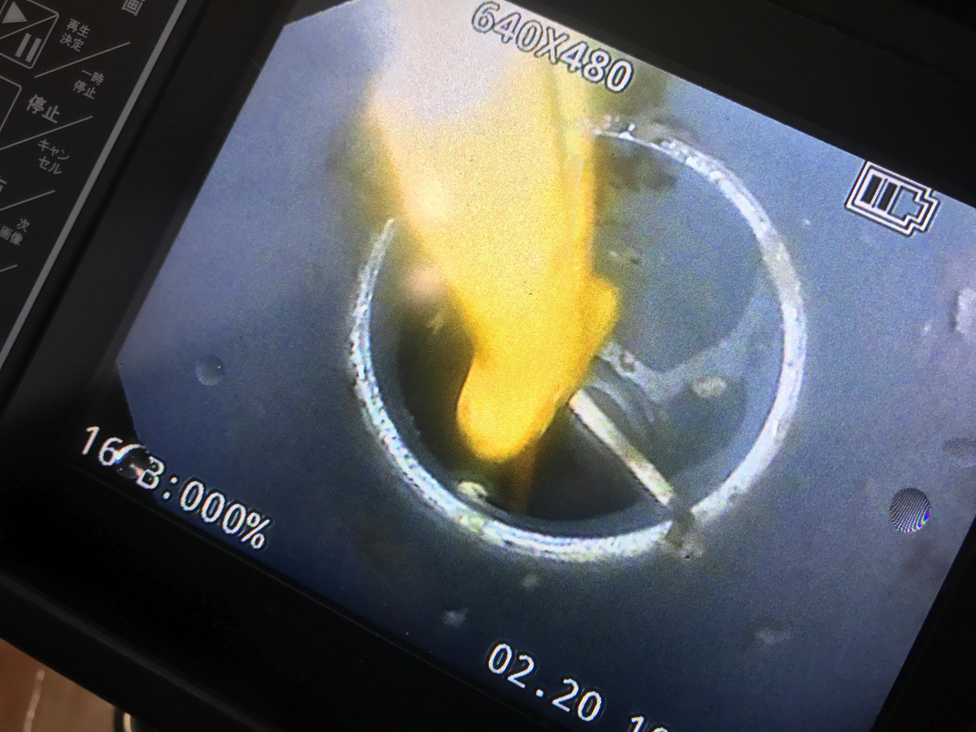 高圧洗浄やスコープにて対応し異物除去致しました。