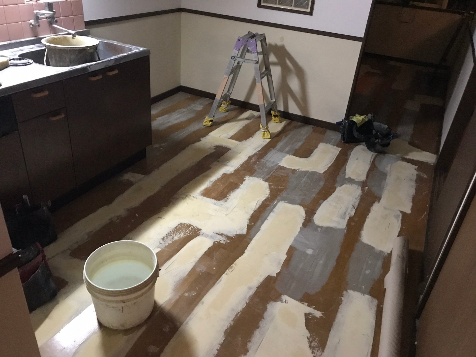 リフォーム 床 下地処理 下地調整 2020/03/05 昨日は新しい床材の張替えをするために、下地処理と下地調整を行いました。 床材を張る前に行う作業で、凹凸をなくす処理やボンドの付きを良くするための大切な作業です。 次はどのような床材になるのでしょうか、完成が楽しみですね。