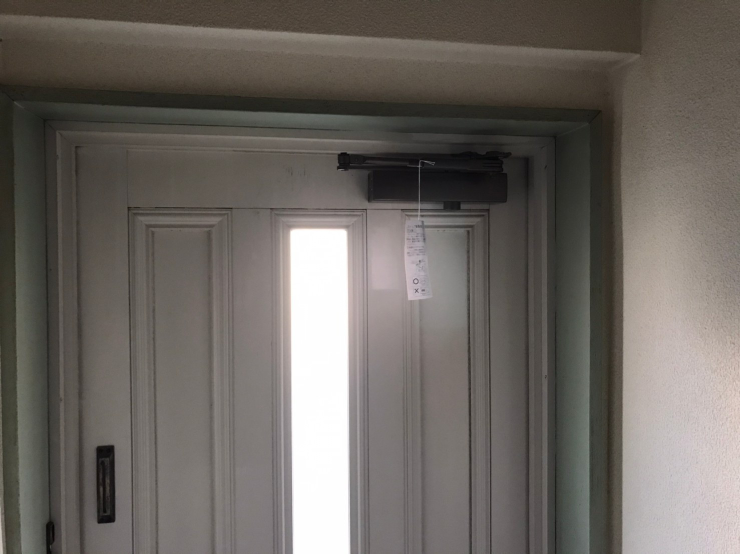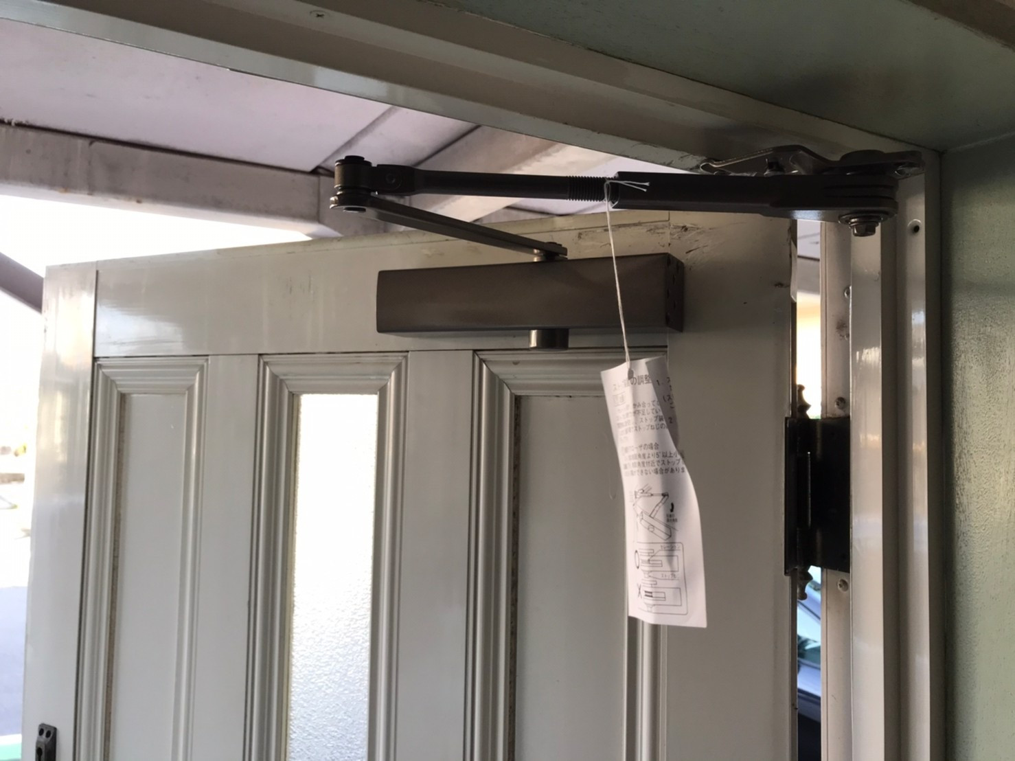 こちらの写真はお客様からドアクローザーが壊れてしまったとご連絡があり、